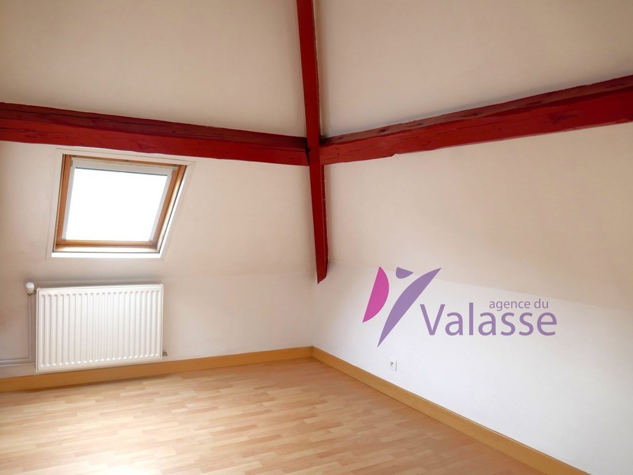 Maison de ville mitoyenne d'un côté, comprenant : Une pièce principale avec cuisine aménagée - équipée (plaque et hotte). A l'étage : Un palier desservant 1 chambre et un bureau, et un wc. Au 2ème étage : Une salle de douches et une chambre mansardée.